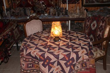 Помимо натуральных камней и украшений, вы найдете в нашем магазине антикварные изделия из меди, ковры, циновки, современные сумки из ковровой ткани и картины маслом, написанные моей супругой Умран Дере.